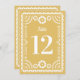 Este belo cartão de número da mesa de casamento inspirado no papel picado apresenta um quadro de ornamentado em branco, um fundo de cor de trigo mole ouro e tipografia festiva. Esta elegante, porém moderna design é uma opção fabulosa para um casamento latinx, janto de ensaio, festa de noivado ou chá de panela. Veja mais na coleção acima...