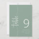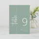Este elegante número da mesa de casamento apresenta uma caligrafia elegante e uma fonte simples de tipografia sans serif para um olhar minimalista e moderno limpo em um fundo verde sábio, que é uma bela maneira de ajudar seus hóspedes a encontrar seu lugar/mesa. A simplicidade desta design adiciona um toque de elegância ao seu casamento. Funciona bem com muitos temas de casamento e, definitivamente, um excelente adicional à sua papelaria de casamento. Apenas personalize os nomes. data do casamento/evento, e número da tabela em alguns passos fáceis e personalize-o para lhe dar um belo toque pessoal. Note-se que a elegante caligrafia da expressão "mesa" e da linha e de outros elementos e trabalhos de arte gráficos não pode ser editada, suprimida ou movida. Eles estão consertados.