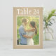 Cartões de mesa de casamento personalizados e elegantes podem ser personalizados com uma foto noivado da noiva e do noivo. Design apresenta o texto branco do número da tabela em um fundo kraft marrom rústico. Para personalizar: digite o número da tabela, clique em "alterar" pela foto padrão para carregar sua própria foto e adicione essa placa de número de tabela individual ao seu carrinho de compro. Repita para todos os números de tabela necessários.