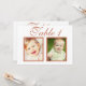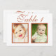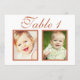 Cartões de números de mesas de casamento elegantes e exclusivos apresentam fotos de infância da noiva e do noivo em uma idade que corresponde ao número da tabela. Para personalizar: digite o número da tabela, clique em "alterar" pelas fotos padrão para carregar suas próprias fotos digitais ou digitalizadas e adicione esse cartão de número de tabela individual ao seu carrinho de compro. Repita para todos os números de tabela necessários. Texto personalizado do script de cor laranja bordado/Terracotta em uma cor de fundo branca (pode ser personalizada).