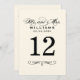 NOTA: cada placa numérica da tabela deve ser personalizada e adicionada individualmente ao carrinho de compro. O cartão elegante inclui um Sr. e Sra. Monograma florescidos com caligrafia negra e design de rolagem. Duas design laterais. Para alterar a cor de fundo (marfim branco suave), vá para Personalizar / Editar / Fundo.