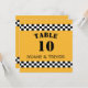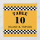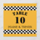 Personalize este número de tabela de estilo de cab do verificador de vintage para sua celebração. Ele tem todos os detalhes do clássico táxi de Nova Iorque: amarelo brilhante com texto arquivado, letras estênceis e listras de tabuleiro de xadrez. Estilo clássico retrô nostálgico para o seu casamento ou festa de teatro em Nova Iorque ou vintage.