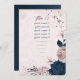 cartão de número de mesa de assentos de flores rosa cor-de-rosa azul-marinho romântico e poeirento
