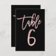Convite Número de mesa 6 em rosa dourado moderno com folha