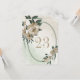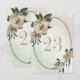 Cartão de número de mesa exclusivo com flores de champanhe românticas e folhas verdes em uma bela moldura geométrica oval.