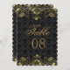 Tons elegantes dourados e pretos com padrão de flores e damasco vintage, número da mesa. Diferentes combinações de cores podem ser solicitadas por e-mail diretamente.