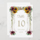 Convite Número de Mesa de Casamento com Dósel de Girassóis