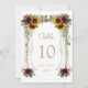 Encantador design de casamento de outono com dossel floral com dossel de madeira aquarela com buquês de girassóis, rosas Burgundy e folhagens. Use a ferramenta Personalizar para adicionar suas informações. Para itens correspondentes, visite minha Coleção de Casamento Botânico com Dossel.