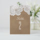 Número de Mesa de Casamento com Renda Branca e Marrom Rústico. Itens correspondentes nesta coleção estão disponíveis.