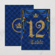 Convite Número de Mesa de Casamento Coroa Dourada Azul Rea