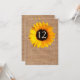 Cartão de número de mesa de recepção de casamento rústico charmoso, feito em uma aparência de lona marrom, com gráficos de um grande e bonito girassol amarelo. Personalize o número para cada mesa na sua recepção. Produtos de casamento correspondentes estão disponíveis.