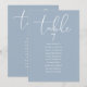 Estes números de mesa de casamento elegantes em azul empoeirado podem ser personalizados com o plano de assentos dos seus convidados definido em tipografia sofisticada. Os cartões são impressos em ambos os lados (frente e verso). Concebido por Thisisnotme©