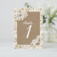 Convite Número de Mesa Rústico em Renda Floral e Sacaria