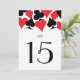 Os naipes de cartas vermelhos e pretos tradicionais em branco são uma adição clássica ao conjunto de casamento Destiny para decoração de recepção. Marque suas mesas de uma maneira muito de Vegas e facilite para os convidados encontrarem um assento. Perfeito para um casamento em Las Vegas em uma pequena capela fora da Strip, tudo o que você precisa é amor e uma ou duas testemunhas!
