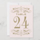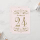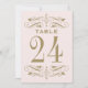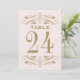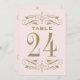 Cartões de números da mesa de casamento do estilo Vintage apresentam espirais decorativas e floresces em ambos os lados da carta. Sistema de cor rosa-balé pastel pálido e ouro antigo. Personalize cada placa de número de tabela de que você precisa e adicione cada uma ao seu carrinho individualmente.