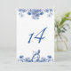 Convite Número de Tabela de Padrão da China Floral Azul e