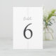 Números simples e chic fazem uma declaração elegante no seu casamento ou evento. Design apresenta "mesa" em letra manuscrita, com a mesa por baixo na tipografia do eterno serif. Design repete atrás. Cinza, um preto macio.