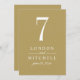 A carta de número da mesa de casamento de ouro elegante e na moda apresenta um belo design de monograma minimalista. O texto personalizado e o número da tabela podem ser totalmente personalizados com os nomes da noiva e do noivo e a data do casamento. Nota, cada cartão de número de tabela deve ser personalizado e adicionado individualmente ao carrinho de compro (1,2,3...etc.). Por favor, compre nossa Coleção de Casamentos Dourados Clássicos Elegantes para coordenar designs.