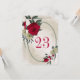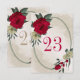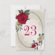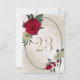 Cartão único de número de tabela com flores românticas vermelhas e amarelas pálidas e folhas verdes em uma bela estrutura geométrica oval. PARA MAIS PRODUTOS CORRESPONDENTES, clique na coleção acima ou entre em contato comigo.