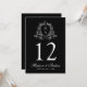 Faça uma declaração em negrito com estes cartões de número de mesa floral preto e branco, apresentando as iniciais do casal numa crista branca em greve no topo. O número da tabela é mostrado de forma destacada no centro, com os nomes do casal e a data na elegante caligrafia branca — ideal para casamentos modernos, recepções formais de preto e branco ou comemorações noturnas. Este cartão mede 5"x7". Edite cada número de tabela individualmente e adicione-os ao carrinho para garantir um processo de pedido suave.