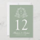 Traga um toque botânico refinado para o seu casamento com estes cartões verdes de números de mesas seniores, com uma crista floral branca e macia que enquadra o monograma do casal. O número da tabela é apresentado claramente no centro, com nomes e data em elegante caligrafia branca abaixo — perfeita para casamentos verdes sábios, recepções de jardins ou temas inspirados na natureza. Este cartão mede 5"x7". Edite cada número de tabela individualmente e adicione-os ao carrinho para garantir um processo de pedido suave.