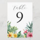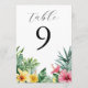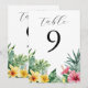 Convite Números de mesa com Flores Tropicais de Aquarela e