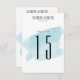Um design moderno de números de mesa para casamento com fundo de efeito aquarela turquesa.