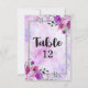 Números de mesa de casamento com moldura de glitter prateado falso e confete floral em aquarela com fonte de pincel moderno! ~ Confira minha loja para ver o conjunto completo de casamento para este design!