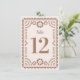 Este belo papel picado inspirado no cartão de número da mesa de casamento apresenta um quadro de ornamentado em tatuagem escura sobre um fundo esfregado, e tipografia festiva. Esta elegante, porém moderna design é uma opção fabulosa para um casamento latinx, janto de ensaio, festa de noivado ou chá de panela. Consulte coordenando itens na coleção...