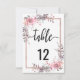 Números de mesa de casamento em aquarela floral em moldura dourada rosa e rosa com fonte de pincel moderno! ~ Confira minha loja para ver o conjunto completo de casamento deste design!