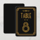 Esses números de mesa apresentam uma paleta de cores preta e dourada, uma moldura geométrica e outros detalhes estilísticos, todos inspirados no Art Deco e nos loucos anos vinte. Você pode personalizar os campos de texto de amostra ao seu gosto.