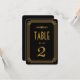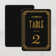 Esses números de mesa apresentam uma paleta de cores preta e dourada, uma moldura geométrica e outros detalhes estilísticos, todos inspirados no Art Déco e nos loucos anos vinte. Você pode personalizar os campos de texto de amostra ao seu gosto.