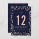 Convite Números de Mesa Florais Elegantes em Azul Naval e