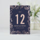 Elegante, moderno e sofisticado falso dourado rosado e padrão floral azul naval moderno desenhado à mão, cartão de mesa de casamento. Este design clássico e sofisticado é perfeito para a recepção de casamento elegante, sofisticada e moderna. Personalize com números de mesa personalizados na frente ou adicione sua própria mensagem pessoal clicando no botão "personalizar". Além disso, adicione seu próprio monograma inicial personalizado no verso. Todo o design de impressão de foto.