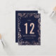 Convite Números de Mesa Florais em Azul Naval e Dourado Ro