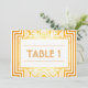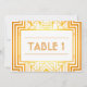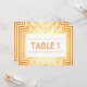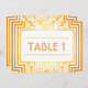 Esses números de mesa apresentam uma moldura geométrica intrincada, padrões geométricos, uma paleta de cores branca e dourada, e outros detalhes estilísticos, todos inspirados no Art Déco e nos loucos anos vinte. Você pode personalizar os campos de texto de amostra ao seu gosto.