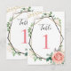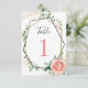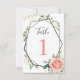 Números de mesa geométricos rosa dourado moderno. Esse convite com folhagem verde fará o trabalho! Esse convite personalizável apresenta uma moldura geométrica moderna com brilho dourado e preto. As bordas são adornadas com folhagens verdes como eucalipto, frutas vermelhas e flores de rosas rosa e creme. As laterais são adornadas com brilho dourado. Isso faz um convite de folhagem moderna incrível.