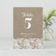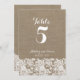 Números de mesa para um casamento rústico com aniagem e renda. O design é duplo lado. Você pode adicionar cada número ao seu carrinho e imprimir ambos os lados. Todo o texto, estilo e posicionamento são editáveis. Corresponde à coleção de aniagem e renda na minha loja. http://www.zazzle.com/collections/burlap_and_lace_for_rustic_wedding-119613768546532247?rf=238757713317449265