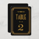 Estes números de mesa apresentam uma paleta de cores preta e dourada, uma moldura geométrica e outros detalhes estilísticos, todos inspirados no Art Deco e nos loucos anos vinte. Você pode personalizar os campos de texto de amostra ao seu gosto.
