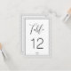 Lindos na sua simplicidade, as peças deste conjunto de casamento apresentam acentos de letra manuscrita moderna e uma paleta de cores clássica em preto e branco que pode ser facilmente alterada para atender às suas preferências. Uma borda geométrica sutil destaca este cartão de número de mesa junto com as iniciais dos noivos. Procure ID523 para ver todas as peças deste conjunto elegante.