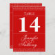 Números simples e simples de recepção de casamento vermelha e branca. Personalize com seus detalhes. Corresponde ao menu de casamento mostrado abaixo. Você deve alterar o número para cada número necessário e adicioná-lo a cada carrinho, um de cada vez. Os descontos de quantidade podem ser aplicados assim que você adicionar todos os itens ao seu carrinho. Se você tiver alguma dúvida ou precisar de ajuda ou outros itens de casamento neste estilo, entre em contato comigo por meio de "enviar uma mensagem" na minha página principal do eden (no painel esquerdo). Design e fotografia de Sarah Trett.