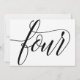 Tabela de Caligrafia Luxe Número 4 (Preto): Esta elegante placa de número da tabela de caligrafia é definida em preto rico, mas você pode alterá-la para qualquer cor que quiser apenas mudando sua cor de fundo!. **HOW TO CHANGE THE DESIGN COLOR (The word "RSVP")** 1) Clique no botão "Personalizar". 2) Clique no link "ClICK TO CUSTOMIZE FAIORE" (ClICK PARA PERSONALIZAR MAIS) na parte inferior. Então você terá a opção de mudar sua "COR DE FUNDO" para sua cor de casamento. Se você mudar sua cor de design, não se esqueça de mudar de cor na parte traseira também: )