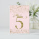Convite Números de Tabela de Largura Dourada Cor-de-Rosa N