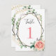 Números de Tabela Geométrica Dourada Rosa Moderno. Estes convites de folhagem verde farão o truque! este convite personalizável apresenta uma estrutura geométrica moderna com brilho falsa de ouro e preto. As bordas são enfeitadas com folhagem verde como eucalipto, bagas e flores de rosa rosa e creme. Os lados são enfeitados com brilho de ouro falso. Isso faz um convite para a folhagem moderna do excelente. Encontre outros convites para casamento de madeira em https://www.zazzle.com/oddlotweddings Basta pressionar o botão "personalizar" para mais personalização.