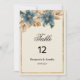 Marinho botânico azul, marfim e números florais de mesa de jardim de ouro Convite de casamento. Um simples convite botânico às flores da primavera que é perfeito para um casamento no jardim ou no exterior. Todas as designs são impressas.