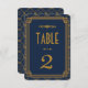 Esses números de tabela apresentam uma paleta de cores azul e dourada, um quadro geométrico, padrões geométricos e outros detalhes estilísticos, todos inspirados na Arte Deco e nos vinte e poucos anos ruidosos. Você pode personalizar os campos de texto de exemplo de acordo com o seu gosto.