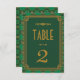Esses números de tabela apresentam uma paleta esmeralda verde e dourada, uma estrutura geométrica, padrões geométricos e outros detalhes estilísticos, todos inspirados em Art Deco e nos vinte e poucos anos. Você pode personalizar os campos de texto de exemplo de acordo com o seu gosto.