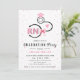 Nursing shool class of 2026 stethoscope pink RN graduation Invitation. This feminime girly graduation invitation features a black stethoscope with a graduation cap, a heart, a coquette bow, confetti and the initials RN in pink. The back includes a pattern of the 'RN" initials.