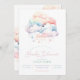 Convite de chá de fraldas de nuvem em cores arco-íris com estrelas.