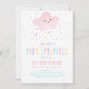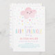 Este adorável convite apresenta uma nuvem com gotas de chuva coloridas e confete.